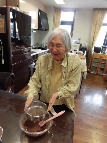 いつぞやのリベンジで、チョコレートケーキに再挑戦しました☆ 卵やチョコレートをまぜてもらったり、粉をふるってもらったり。前回は砂糖が多くて膨らみませんでしたが、今回はばっちり膨らんで♪皆さまでおいしくいただいたのですが…、写真を撮るのを忘れました…!ということで、再々チャレンジを誓ったのでした!