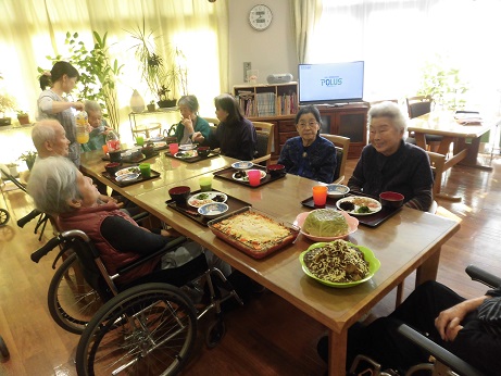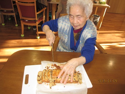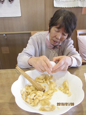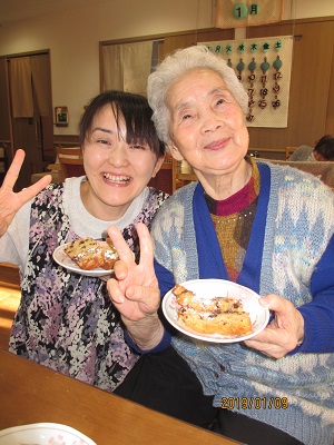 今回のおやつは、バナナパウンドケーキです!バナナと卵を混ぜ、ホットケーキミックスを混ぜて型に流し入れるだけ☆簡単で美味しくできるおやつ良いですよね♪焼けた時のフロアに香るバナナの良い匂いが食欲を注ぎます☆“凄く美味しい!”と、好評で皆さま大満足でした☆