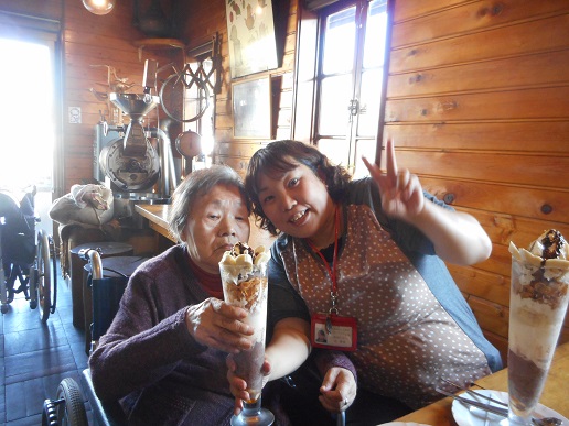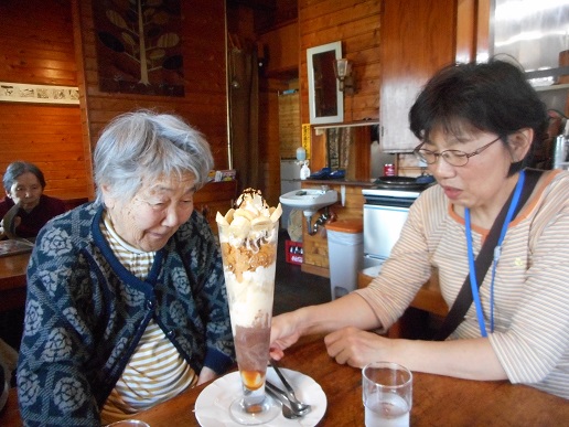 田名にある喫茶店『珈人』に、パフェを食べに行ってきました♪落ち着いた雰囲気のお店のテーブルに、大きなパフェがそびえ立つように並びます☆“食べられるかな?”という心配をよそに、皆さまぺろりと召し上がりました♪