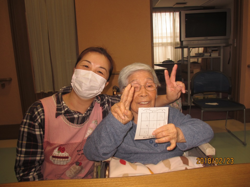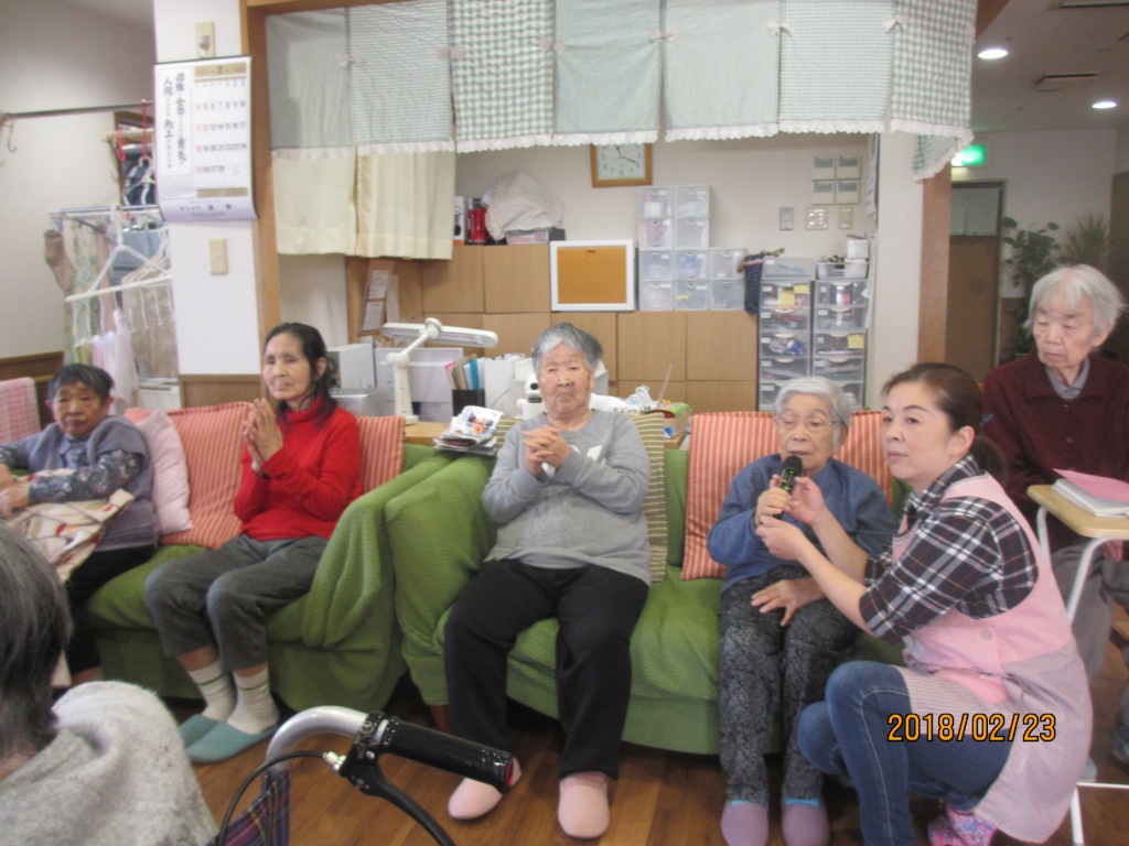 寒さが身にしみる今日この頃…室内でも楽しめることをしましょう!と職員が準備したのはまずカラオケ♪皆様、十八番の歌を披露してくださいました☆気持ちよく歌って気分爽快!