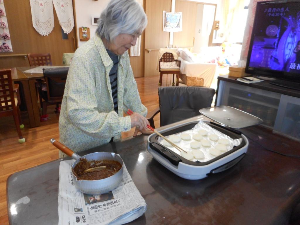 皆様で『五平餅』を作りました!ご飯を力いっぱいすりこ木でゴリゴリと・・・♪味噌ダレを塗って美味しく頂きました☆