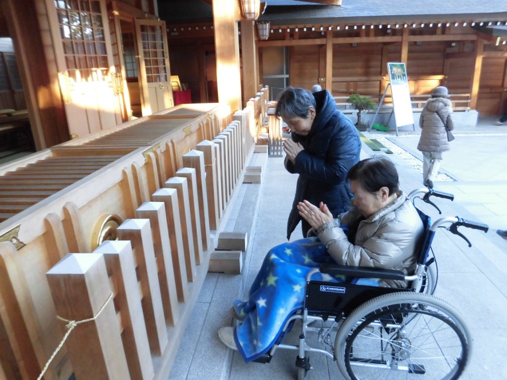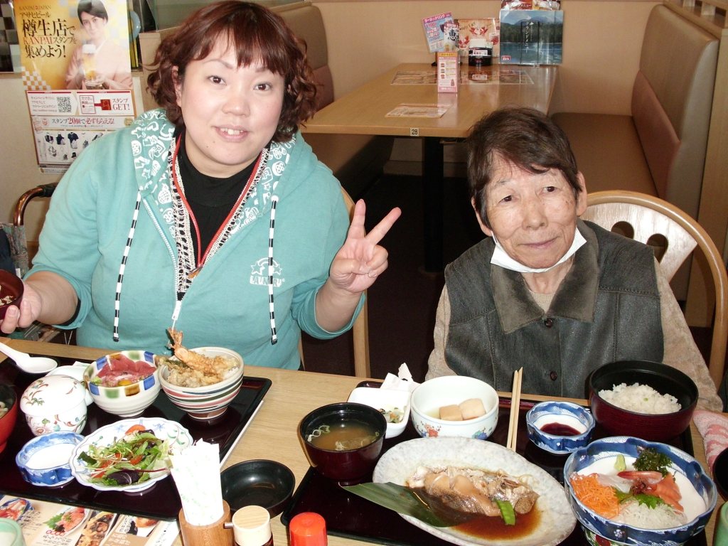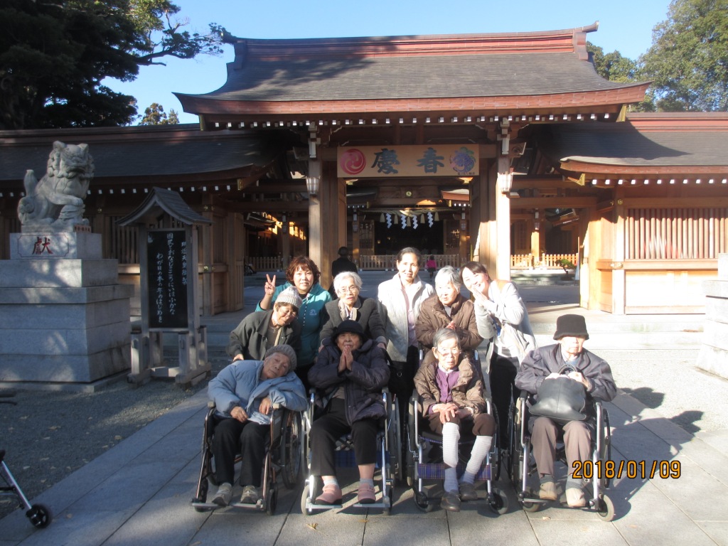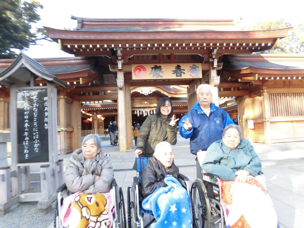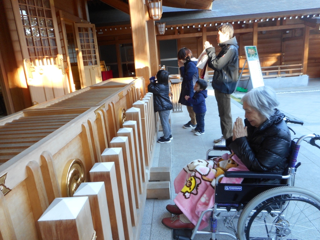今日の昼食は『とんでん』に外食です☆皆様、食事やデザートを召し上がり、“美味しいね♪”と笑顔が多く見られました♬食事の後は、初詣に『亀が池神社』へ行き、皆様熱心に願い事をされており、お天気にも恵まれ良い外出日となりました♪
