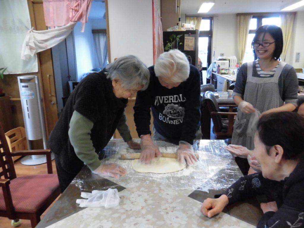 今回は普通のうどんを目指して手打ちうどんを作りました☆2回目となると皆さま慣れた手つき、足つき(?)で、こねて、ふんで、伸ばしてくださいました♪カレーをかけて美味しく頂きました☆