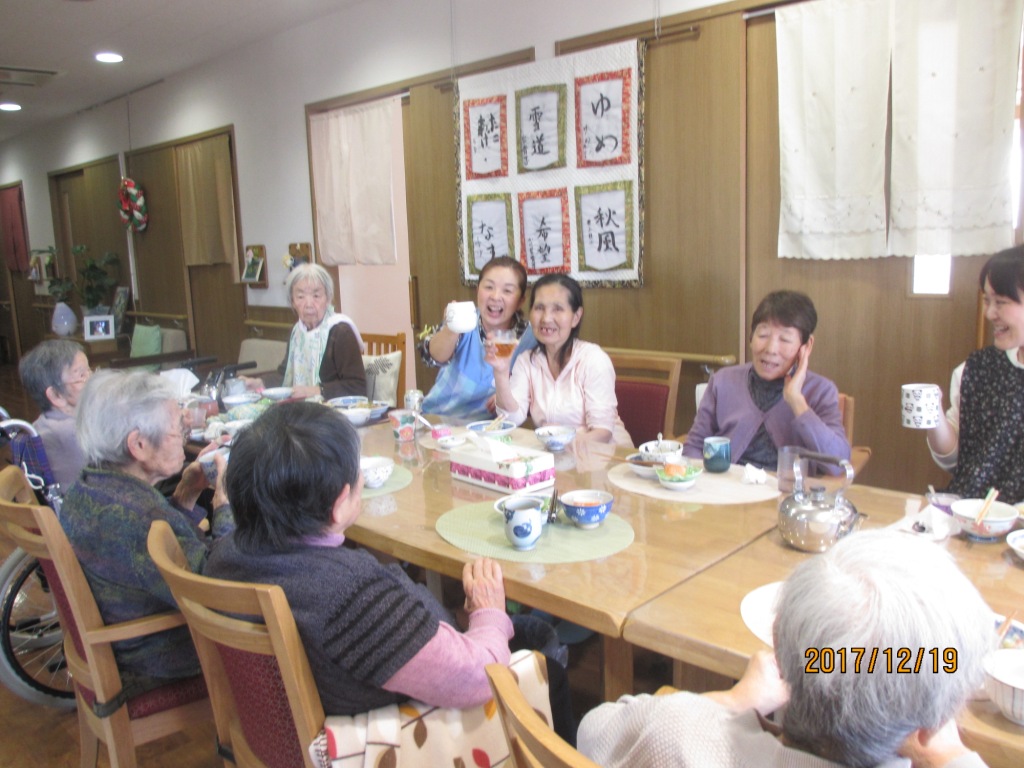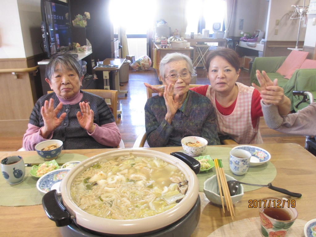 今日は『きりたんぽ鍋』を囲みながらのけやきの忘年会です!ビールや鍋を食べながら皆様、一年を振り返ったり、また来年も宜しくお願いします♪と挨拶されたりと、のんびりした時間を過ごしました☆