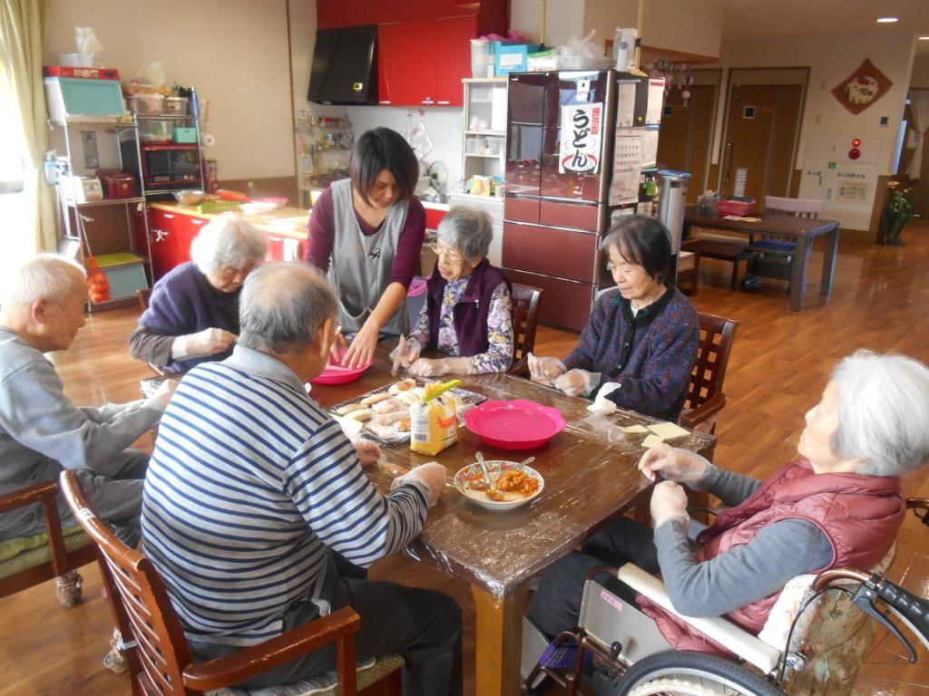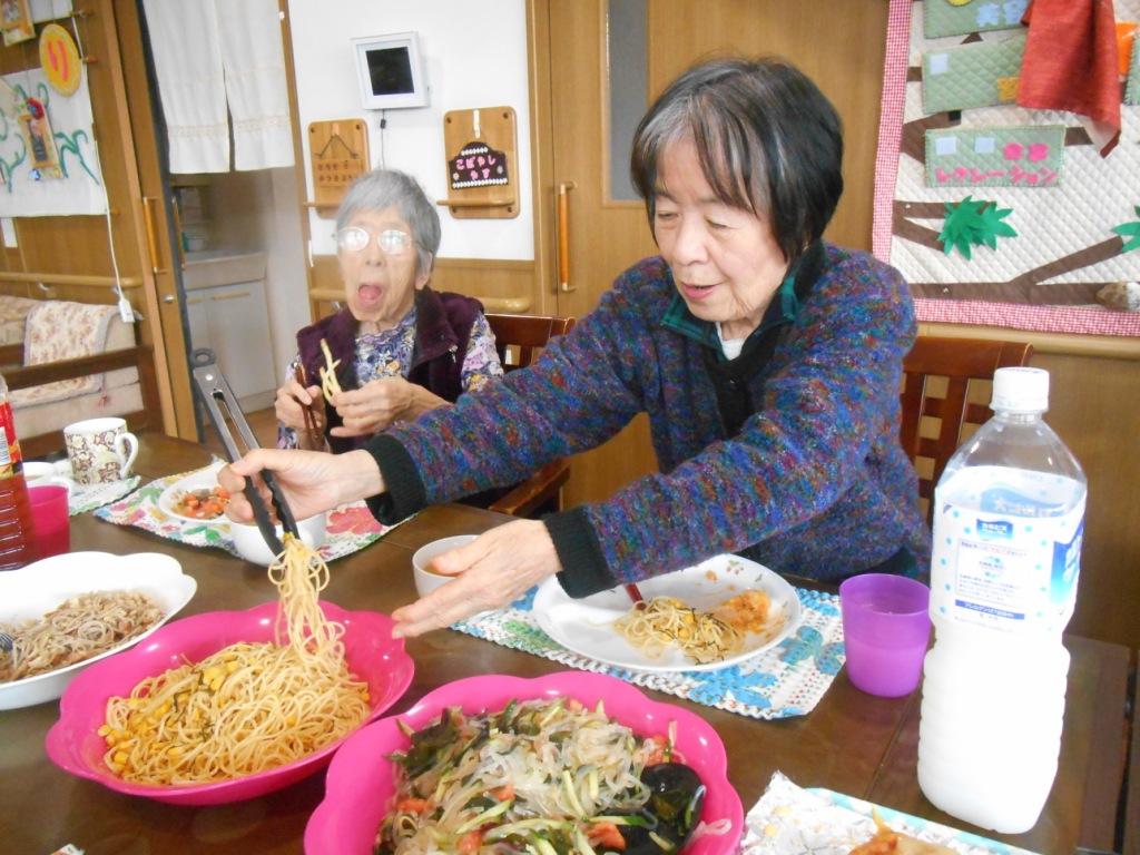 皆様と一緒に『春巻き』を作ってみました!パスタに普通の春巻きじゃ・・という事で、ピザ風♬にしてみました☆他には、『そばペペロンチーノ』や『バターたらこスパゲッティー』などなども一緒に♪皆様おなか一杯に食べられていました☆