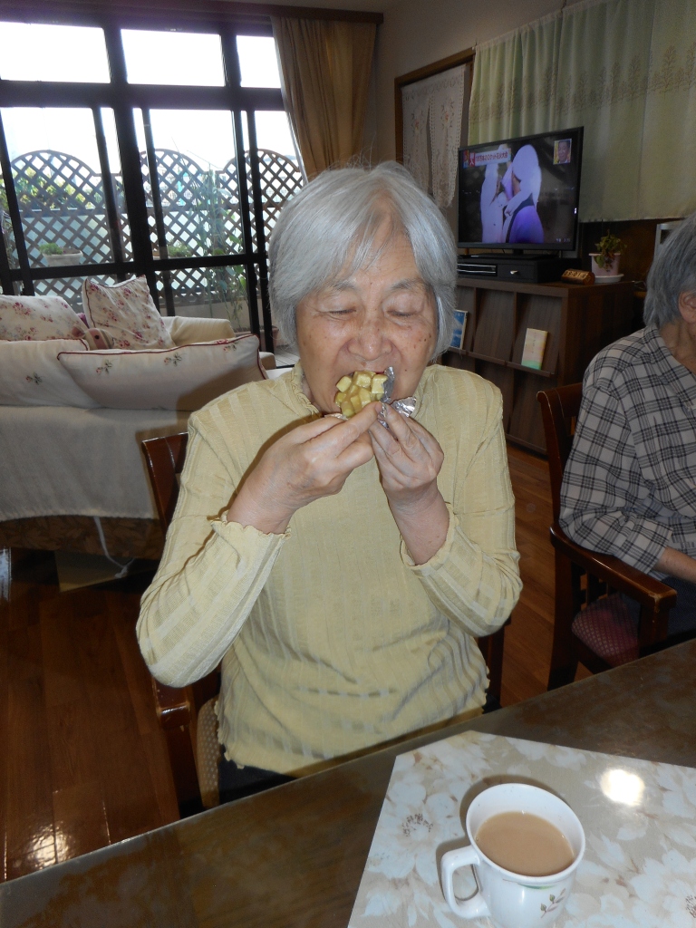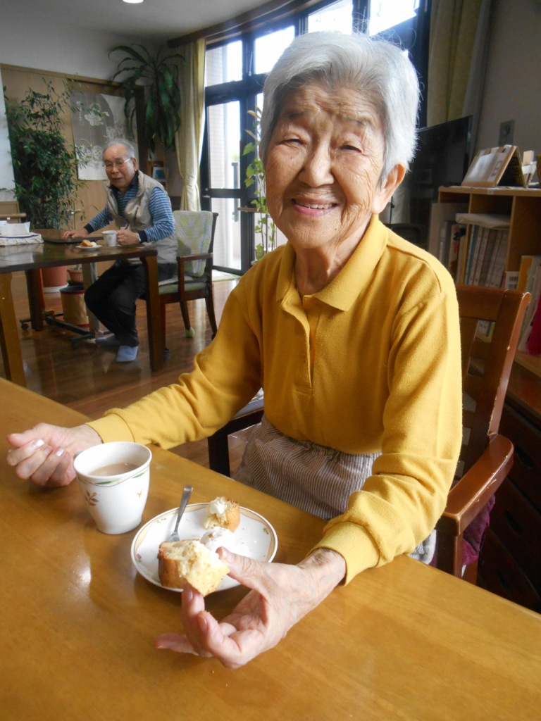 ふわふわな食感を目指して『蒸しケーキ』を作りをしました!“出来立ては、おいしいね♪”と皆様大きな口を開け、頬張りながら頂きました☆