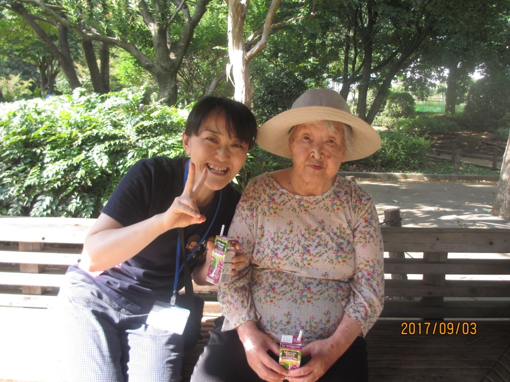 今日はお天気が良いので『北公園』に散歩へ出かけました☆東屋で休憩をとりながら、のんびりとジュースを飲み、“いい天気だねえ♪”と穏やかな時間を過ごしました♪