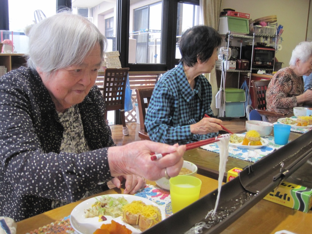 やっぱり暑い時は、そうめんですよね♪いつもとちょっと違った中華風の麺つゆに付けて“これはこれでいつもと違って美味しい!”と言われ、楽しみながらワイワイと、たくさん食べられました☆