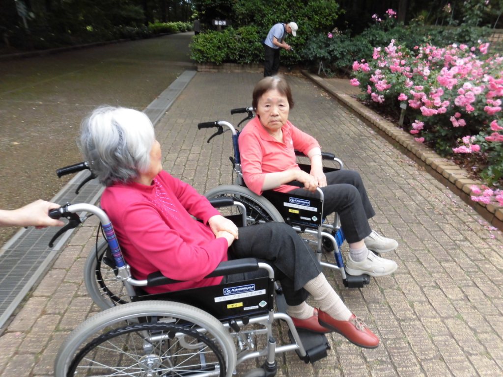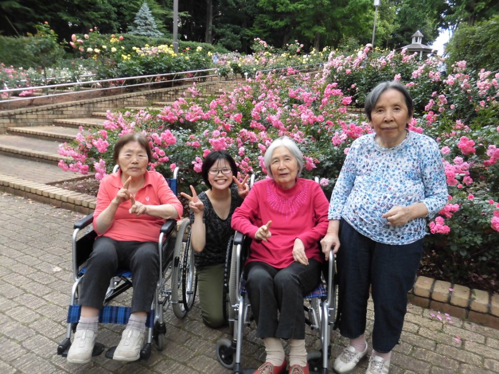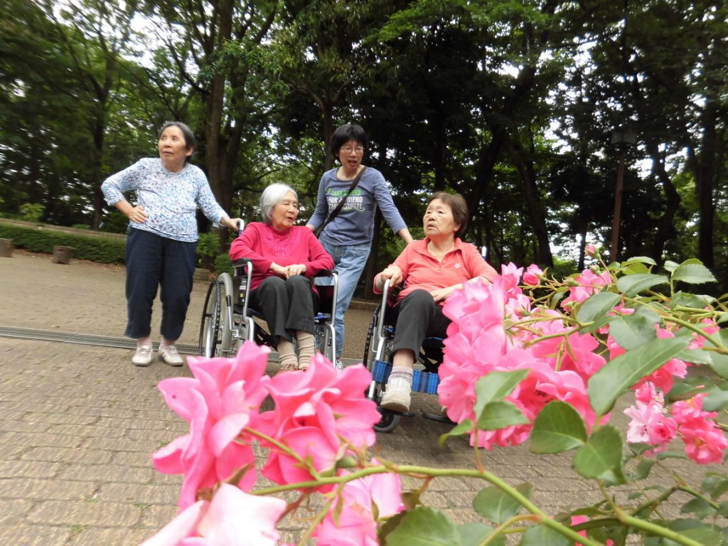 北公園へ『バラ』を見に行きました☆“いい匂いがするわ♪”と、バラ園に近づくにつれて甘い良い香りがしました♪色とりどりのバラを眺めながら“このバラがいいな♬”や“こっちの方が色がきれい!”と皆様の話にも花が咲きました☆