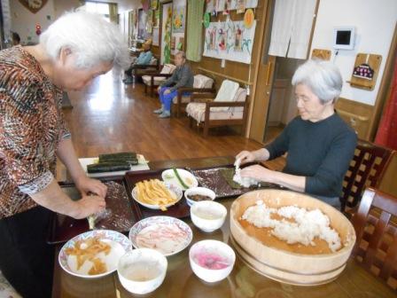 今日は『母の日御膳』を作りました♪母の日なのに、皆様にお手伝いして頂いて・・・美味しい太巻きの御膳を作ることが出来ました!“美味しいね♬”“すいかなんて、もう夏なの?”と笑顔多く、穏やかな母の日を過ごしました☆