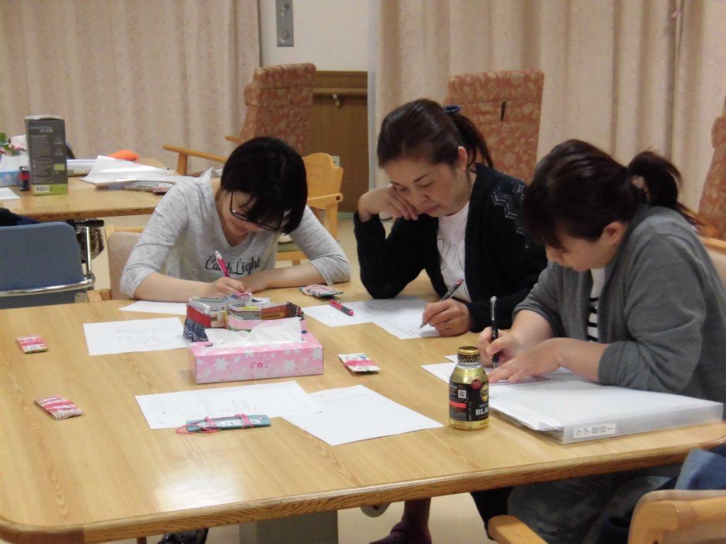 今月の職員の勉強会の内容は『災害時・停電時の対応について』です。グループホームでは、停電時は灯りなどの“電気が点かない”、IHを使用している為、“料理が出来ない”、給水装置が起動しない為、“水道が使えない”といった状態になってしまいます。どんなことが起こっても、冷静に対応出来る様に定期的な災害に対する勉強会の実施を行っています。