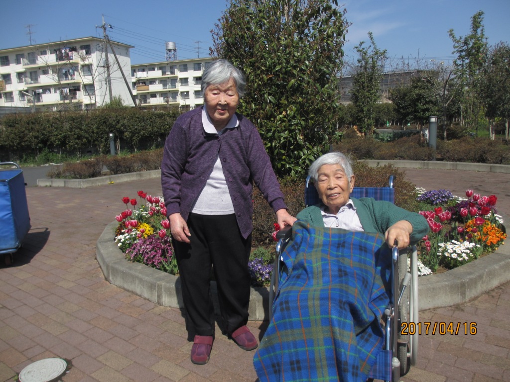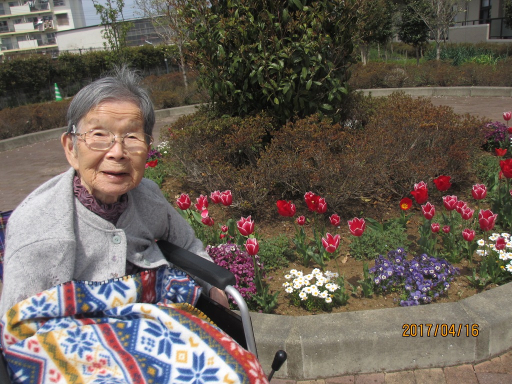 天気も良かったので施設の周りを散歩しました♪花壇に咲く色鮮やかな花に驚きと感激で、「今日は暖かくて花も綺麗♬気持ちもいいしなんとも言えないね☆」と笑顔で喜ばれていました♬