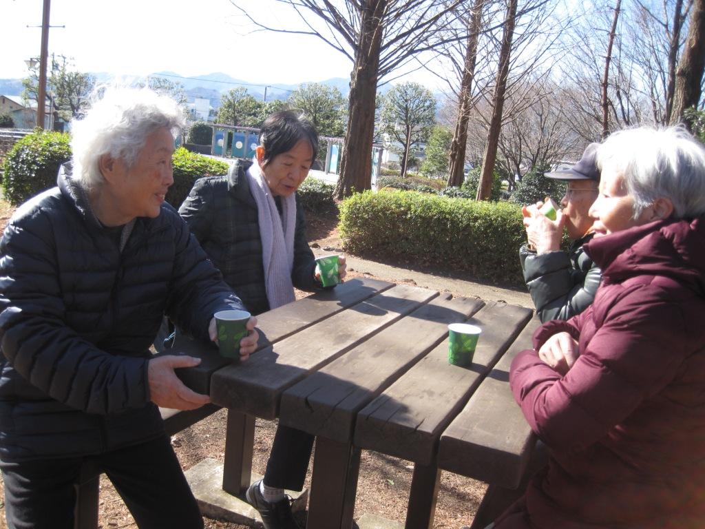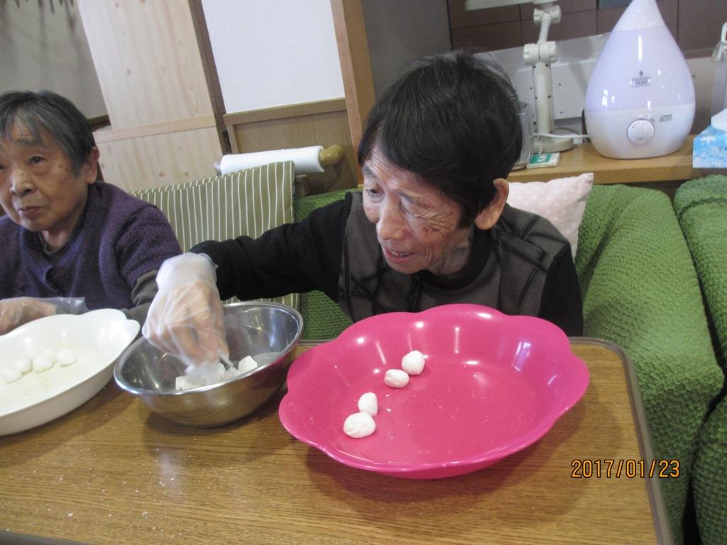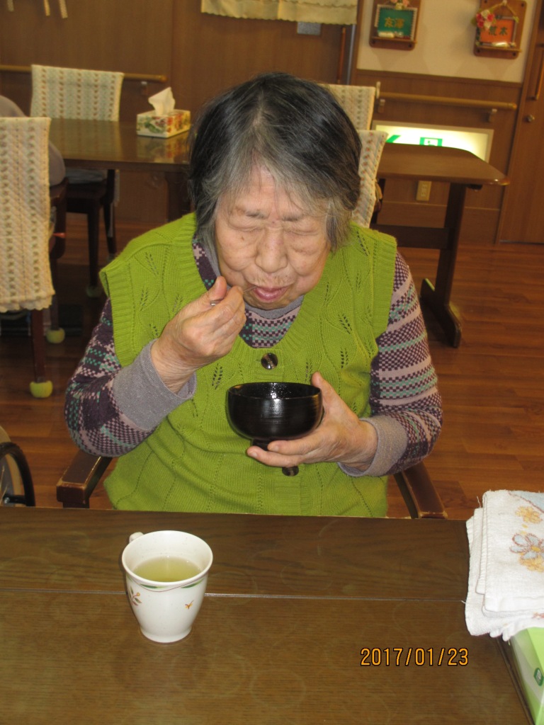 皆様と一緒に『おしるこ』を作りました♪今回は、お餅ではなくお団子で!甘いにおしるこに皆様、あっという間に完食されました♬