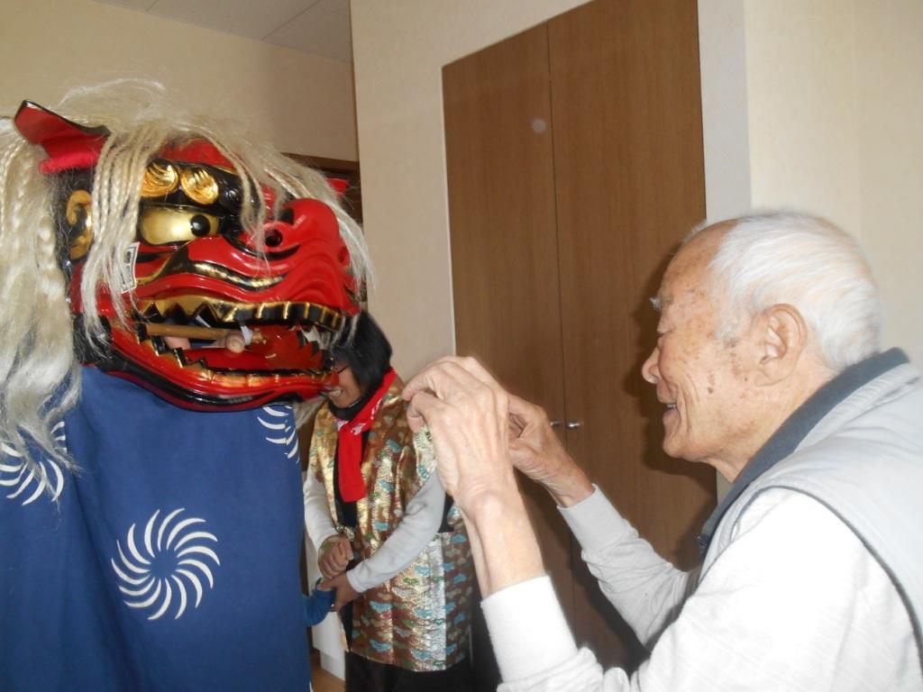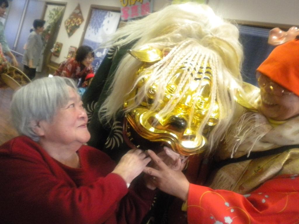 今年も『獅子舞』が来てくれました!健康を願って、頭を噛んでもらいましたよ♪