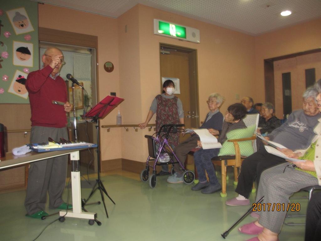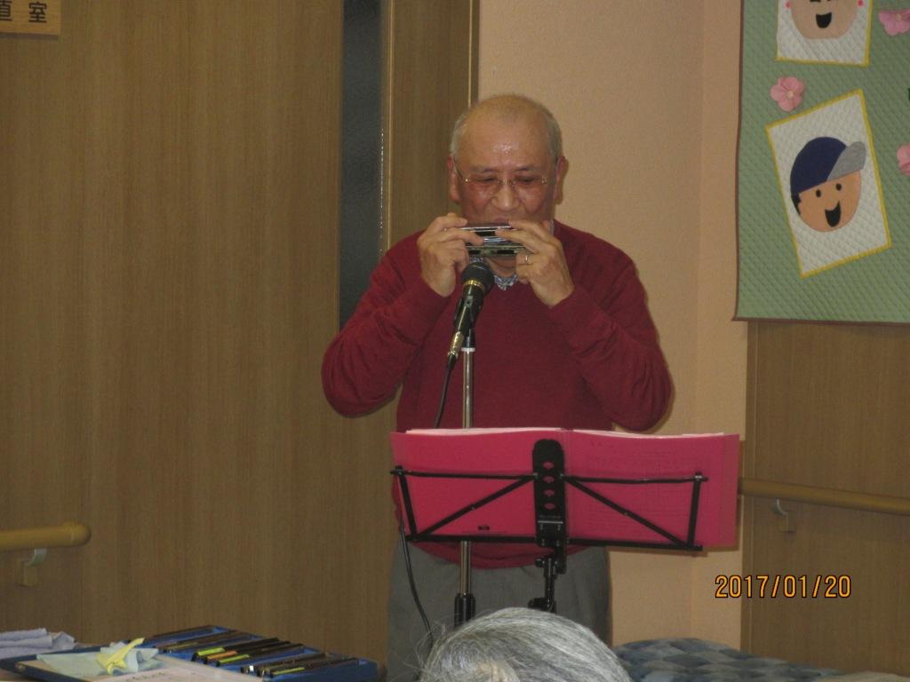 グループホームの2階中央フロアにて『ハーモニカ奏者』による演奏会が行なわれました♬曲によってハーモニカを複数使い分けて見事な音色を奏でられ、皆様も曲に合わせて歌を唄われ楽しいひとときを過ごしました♪