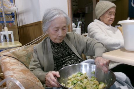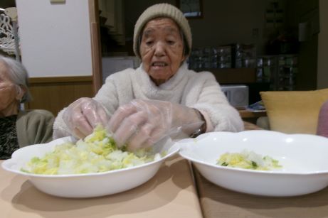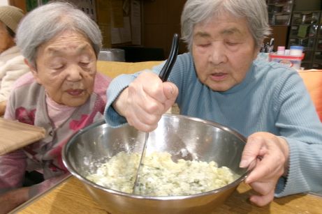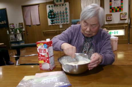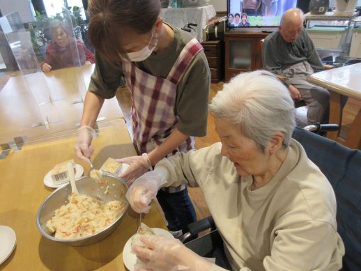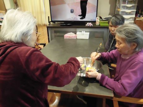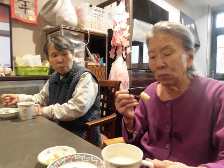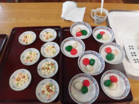 なので皆さんと団子作りを行いました♪今回は白玉粉に豆腐をいてみました♪もちもちで喉ごしも良くいいねとありましたが、なんか味が無いねとの声が聞かれ、よくよく考えてみると食紅を入れただけで味つけの事を忘れていました~