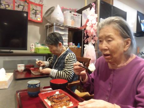 出前が届き蓋を上げると「うあー」「鰻」だと喜んでいました♪ふっくらで美味しいよねと完食していました♪