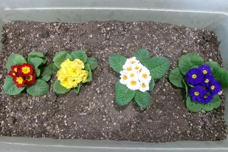 ぽかぽか陽気の今日は4色のジュリアンを植えました♪先月植えたスイトピーが発芽しました!フロアで育ててきた水栽培のヒヤシンスに光を当てようということでベランダへ移動したりイチゴに肥料をあげながら「早く実がなりますように」と声をかけました☆