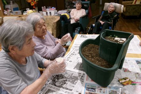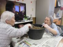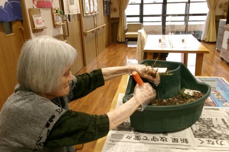春に可愛い花が楽しめるスイトピーの種植えと、花時が過ぎて枯れてしまった葉の処理をしながらまったりと日向ぼっこもしました♪いただいたコスモスが1輪オレンジ色の花を咲かせていて、育てはじめてから2年目のイチゴも株が増えてきています。職員が育てているジャスミンもまだ咲き続けていてベランダは日々お花でいっぱいです♪