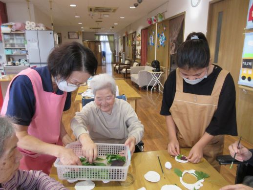 グループホーム中の郷では、年間を通じてたくさんのイベント・行事を開催しています。毎月の季節行事以外にも、誕生会やフラワーセラピー、書道、オカリナ教室などを月1~2回開催しています。