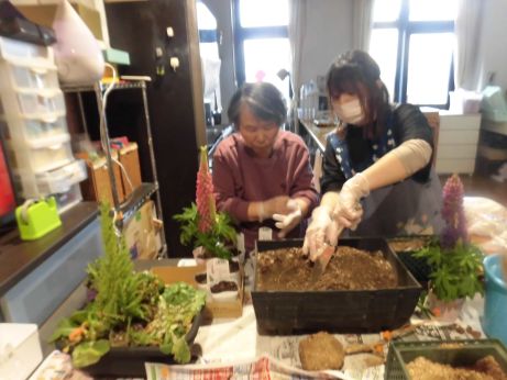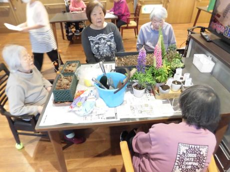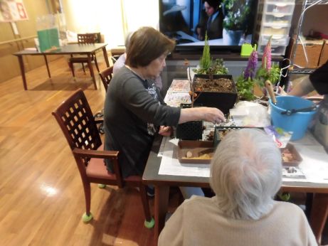 植えながらチューリップの歌を唄いながら何色が咲くのかな~?など和気あいあいと園芸を楽しみました♪
