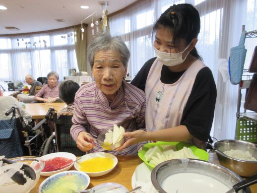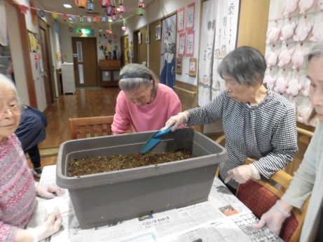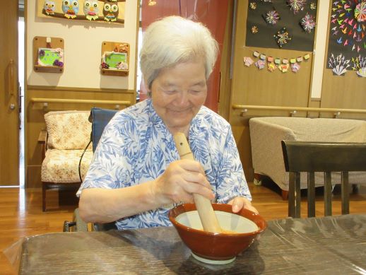 グループホーム中の郷では、年間を通じてたくさんのイベント・行事を開催しています。毎月の季節行事以外にも、誕生会やフラワーセラピー、書道、オカリナ教室などを月1~2回開催しています。