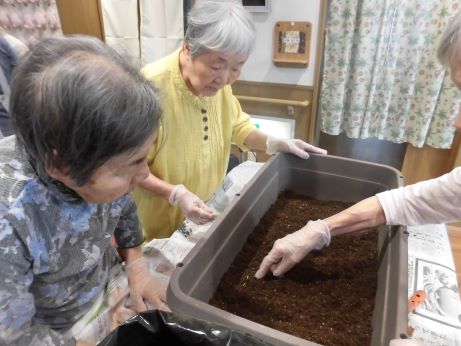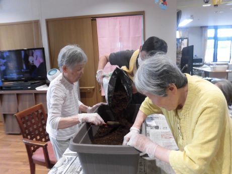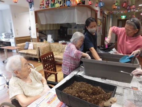 7月は秋に向けての花の種まきを行いました。皆さんの手際の良さやアドバイスをいただきながらあっという間に終わってしまいました。綺麗な花が咲くのを楽しみにしながた毎日の水あげ頑張っていきます!
