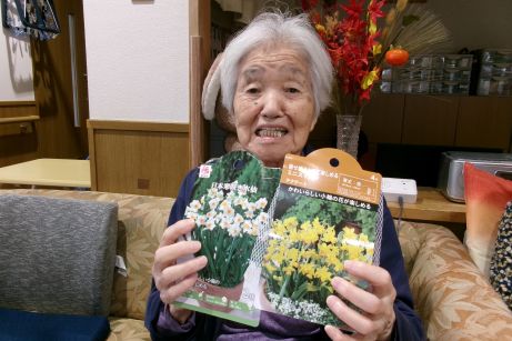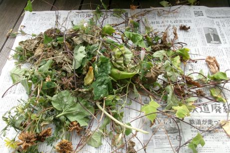 朝顔の種を収穫して支柱も外したのですが4m位伸びたツルを解いていくのが大変で苦労しましたが根気強く丁寧に作業しました。またスイセンは土と水の両方で育てようということになり分担して球根を植えベランダに並べました♪春が待ち遠しいです☆