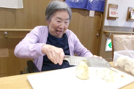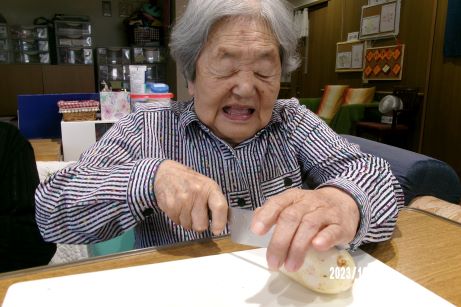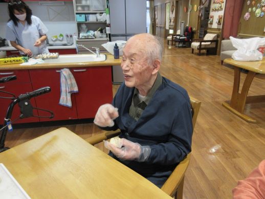出来上がりをみて、いいね!早く食べようと皆さん興味津々一口食べると美味しいねと絶賛されていました♪