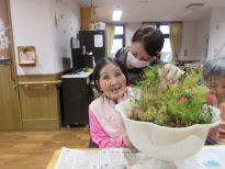 グループホーム中の郷では、年間を通じてたくさんのイベント・行事を開催しています。毎月の季節行事以外にも、誕生会やフラワーセラピー、書道、オカリナ教室などを月1~2回開催しています。