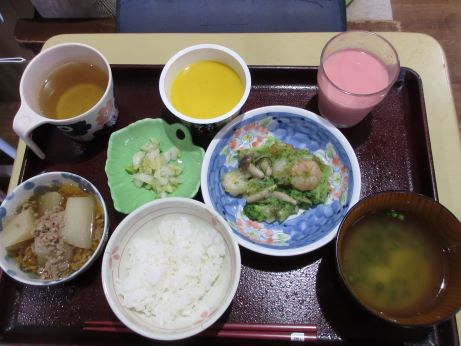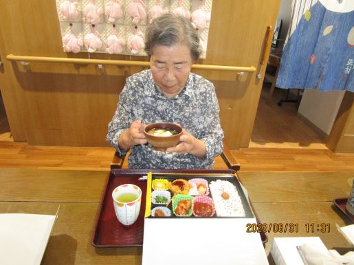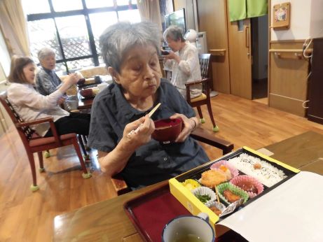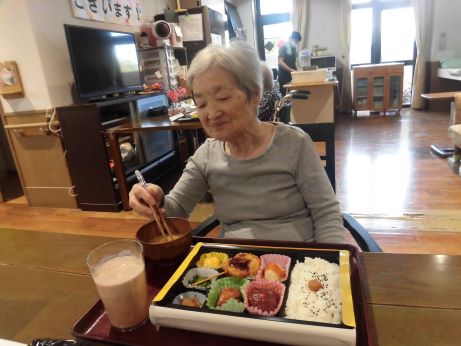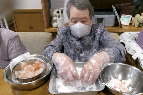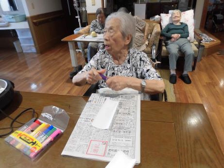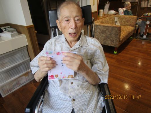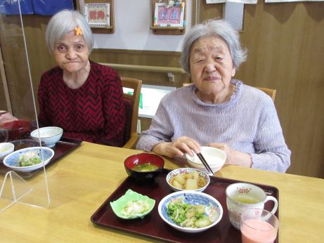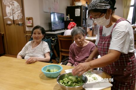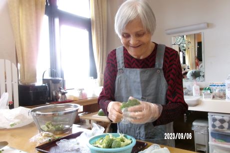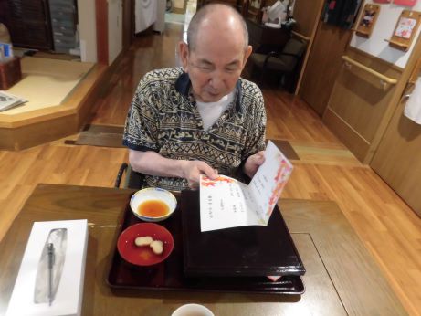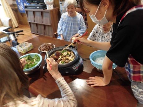 次の日はユニットでお祝いをさせていただきます!皆さんに協力して頂きながらお昼ご飯を作りました。秋の味覚を取り入れたメニューに『サツマイモご飯、キノコたくさんすき焼き、サラダ、洋ナシ、葡萄』2日間もお祝いしてくれてありがとうや嬉しいです♪との声が聞かれました☆皆さんおめでとうございます!