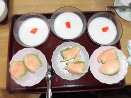 菜の花のキッシュも焼き上がり、デザートにはゴマプリンを添えてボリューム満点、大満足でした♪