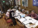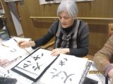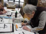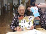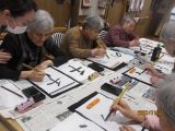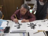 春の訪れが待ち遠しい今日この頃です。今年初めての書道ということで皆さん緊張気味でしたが、お題が決まると意欲満々の表情です♪個々に「たき火」「うめ花」など季節を感じられる言葉を書きながら「そろそろ節分だね」なんて話したり和やかな時間が流れ、合作の「千代の春」を1文字ずつゆっくりと書き上げました。梅の便りが楽しみですね☆