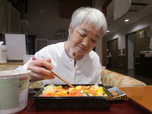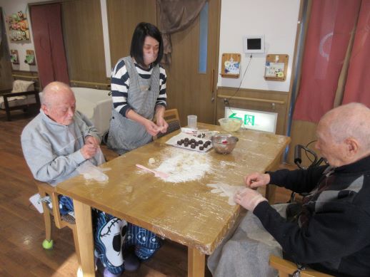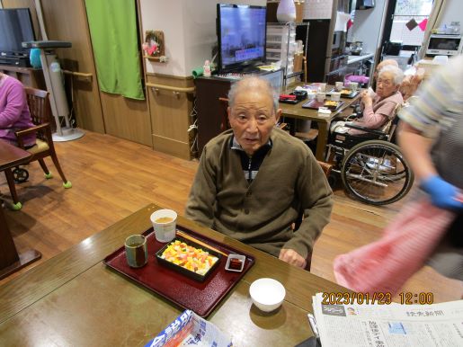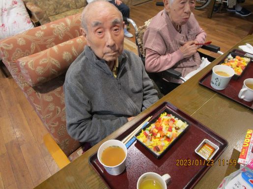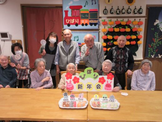 利用者さんの出身地のお菓子を取り寄せ新年会を行いました!