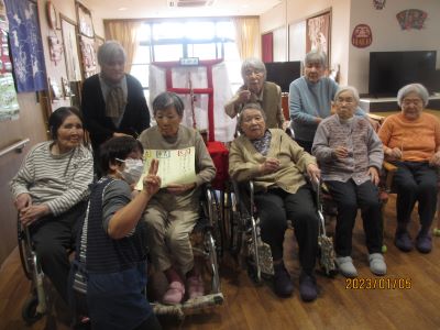 グループホーム中の郷では、年間を通じてたくさんのイベント・行事を開催しています。毎月の季節行事以外にも、誕生会やフラワーセラピー、書道、オカリナ教室などを月1~2回開催しています。