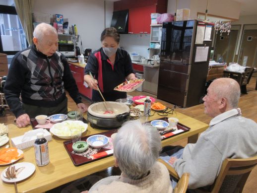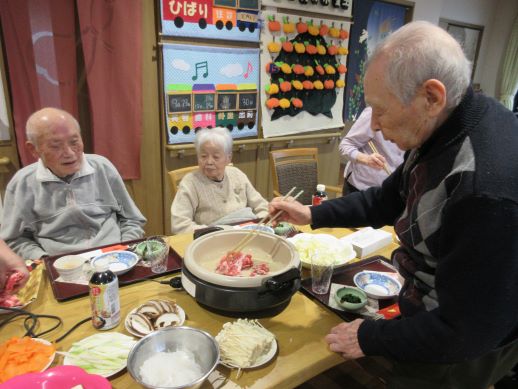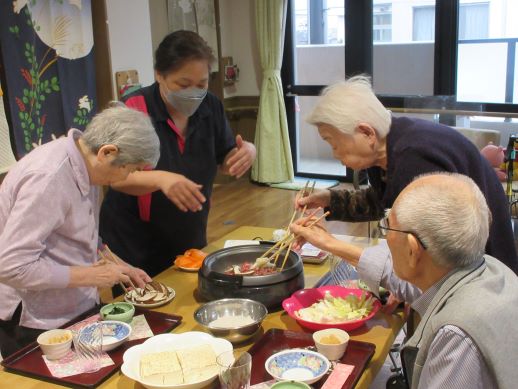 皆で協力しすき焼きの完成です!皆で作ったすき焼きは特別美味しくお腹いっぱい召し上がりました♪