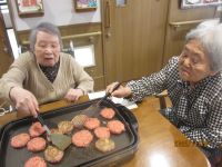 今日はホットプレートを使ってハンバーグを焼いたり具だくさんでカラフルなピラフやコーヒーゼリーなどを作ってみました。玉ねぎのみじん切りは大変なのでは?と思っていましたがあっという間に切り終わり丁寧に具をこねて「さぁ~焼こう焼こう!」焦げないかな?と心配しましたが美味しそうに焼けました!チーズを載せて完成で~す♪
