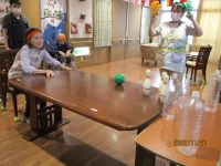 朝から運動会モードで皆さん元気です♪チーム名も全員で決めて緑色のメロンチームとオレンジ色のみかんチームに分かれ、傘を使った玉入れと輪投げやおやつパックン競争をしました。開会式で選手宣誓と元気よく国歌を斉唱してから競技スタート!玉入れが白熱して応援にも熱が入りました☆優勝はメロンチームの皆さんでした☆おめでとう♪