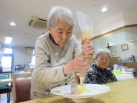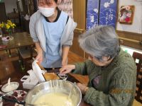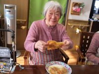 焼いてみました!真剣な顔でこれぐらいかなぁ?上手く出来ないよ~。と声が上がりましたが、何度か挑戦してみると、上手く出来たよ♪と笑顔で教えて下さる方もいました!