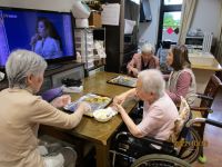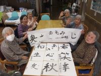グループホーム中の郷では、年間を通じてたくさんのイベント・行事を開催しています。毎月の季節行事以外にも、誕生会やフラワーセラピー、書道、オカリナ教室などを月1~2回開催しています。