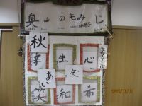 今回は、皆さんが日頃大切にしている言葉や好きな言葉の中から一文字を選んで色紙に書いてみることにしました。「半紙よりも小さいけど書けるかな?」と不安そうでしたが、それぞれの想いを込めながら書きあげて素敵な1枚が完成しました♪合作は秋も深まり紅葉の便りが聞かれるようになってきたので「奥山のもみじ」と書いてみました。