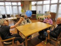 風船バレーは皆で数を数えながら行い、次は100回続けましょう!と張り切っています!
