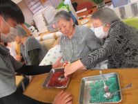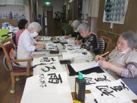 グループホーム中の郷では、年間を通じてたくさんのイベント・行事を開催しています。毎月の季節行事以外にも、誕生会やフラワーセラピー、書道、オカリナ教室などを月1~2回開催しています。