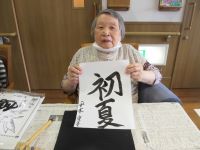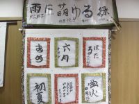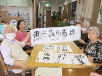 「雨に萌ゆる緑」そんな風景を今回の合作にしました☆個々の書ではみなさん何度も書き直しをしていて「今日はうまく書けないな~」という声が聞かれていましたが、6月らしい言葉が並びました。ユニットに飾られている紫陽花を見ながら筆を執り季節を感じながらゆっくりと書きました♪