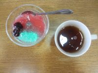 季節柄冷たいおやつが好評で全員でゼリーを作ってみました♪最初にミルクゼリーを作ってグラスの下に入れて固め、その上にカラフルなゼリーをクラッシュして載せました。「ぐちゃぐちゃにしていいの~?もったいないね~」なんて言いながらぐちゃぐちゃ…楽しくて手が止まらず皆で大笑い♪濃厚なミルクと爽やかなゼリーのコンビが最高でした!