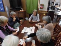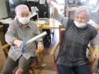 ピンポン玉転がしを開催、ポンポン玉が真っ直ぐ行かないので中々点が取れず、難しねーの声が聞こえるもピン玉が入った時は皆さんで喜んでいました♪