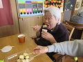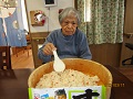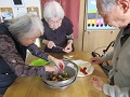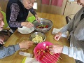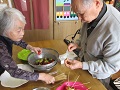 もち米を丸め、あんこで包みながら「これはおいしそうだねぇ~」と皆さんニコニコ!とても上手に出来きました!