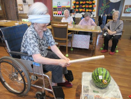 いただきました。昼食後は「わなげ」や「すいか割り」を行い大盛り上がり!