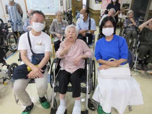 ご家族と一緒に参加され利用者の方も恥ずかしそうでしたが、笑顔多くみられ楽しまれていました♪