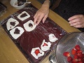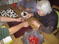 皆さん手慣れたもので、伸ばしたお餅の上に餡とフルーツをのせ
